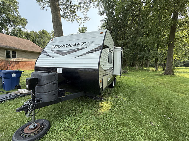 2019 Starcraft Autumn Ridge 20FBS — a lightweight, easy-to-tow travel trailer packed with comfort, style, and everything you need for weekend getaways or cross-country travel! 📐 Trailer Highlights: Front queen bed Rear full bathroom Slide-out dinette (converts to extra sleeping space) Fully equipped kitchen Lightweight and towable by many midsize SUVs/trucks Sleeps up to 4 📐 Specifications: Length: 23′ 3″ Dry Weight: 4,325 lbs GVWR: 6,000 lbs Hitch Weight: 445 lbs Fresh Water Tank: 48 gal Gray/Black Water Tanks: 32 gal each Slide-outs: 1 🏕️ Interior Features: Queen-size bed with storage Dinette with slide-out Full bathroom (shower, vanity, toilet) AM/FM Bluetooth stereo, indoor/outdoor speakers LED lighting, wood-look vinyl flooring 🍳 Kitchen Includes: 2-burner cooktop Microwave 6 cu. ft. refrigerator/freezer Deep sink & pantry space 🌤️ Exterior Features: Power awning with LED lights Stabilizer jacks Walkable roof Exterior storage compartments Aluminum siding