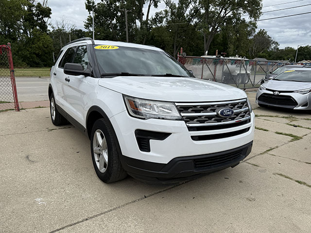 2019 Ford Explorer – White, spacious and reliable SUV with a comfortable interior, advanced safety features, and strong performance. Great for families and road trips.