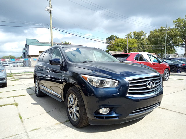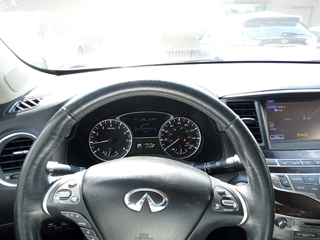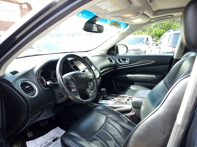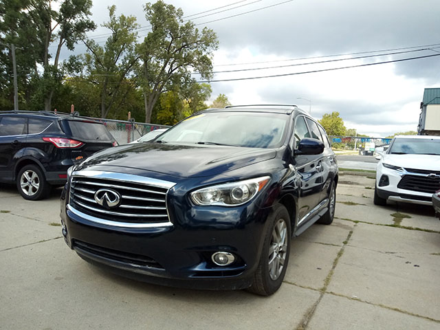 The 2015 Infiniti QX60 AWD is a luxury midsize SUV with three-row seating, offering ample space for passengers and cargo. It features a 3.5L V6 engine and all-wheel drive for a smooth, capable ride. The QX60 comes with premium features like leather upholstery, a touchscreen infotainment system, and advanced safety features, making it a comfortable and versatile option for families.